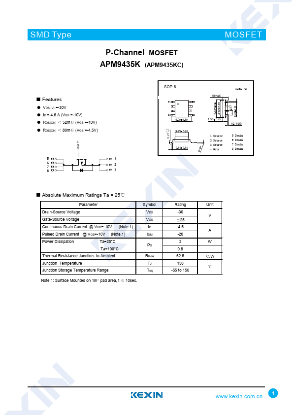 P-Channel MOSFET APM9435K (APM9435KC)