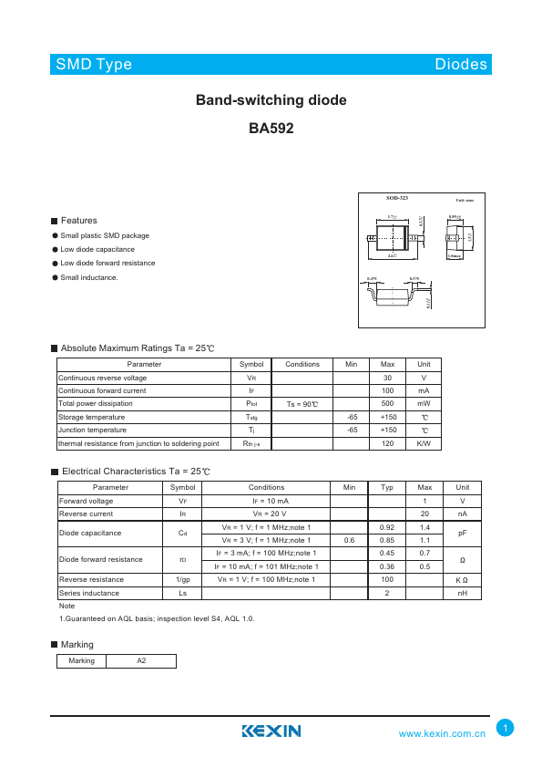 | BA592 | Silicon RF Switching Diode | Siemens Semiconductor Group | |