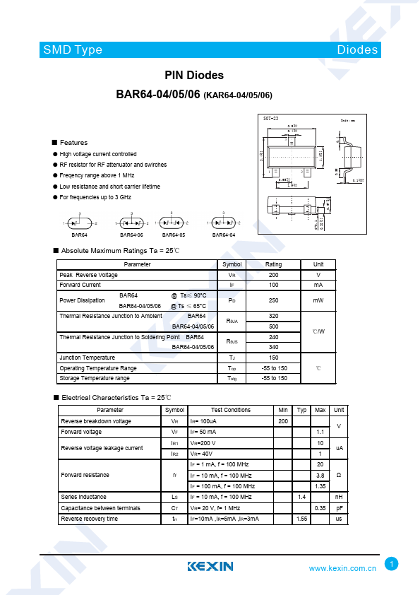 SMD Type PIN Diodes BAR64-04/05/06 (KAR64-04/05/06).