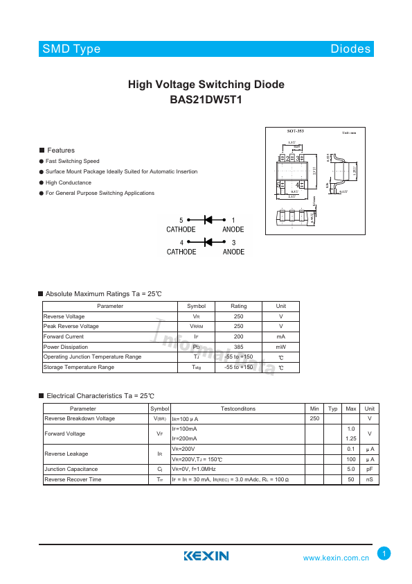| Datasheet | BAS21DW5T1-Kexin.pdf |