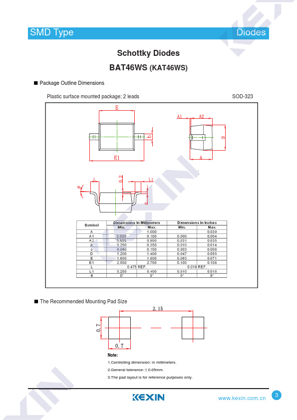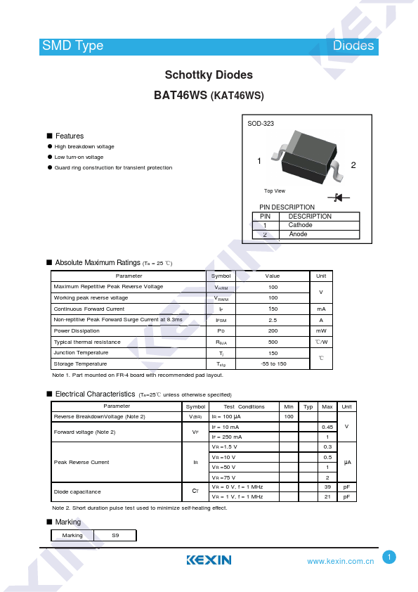 | Datasheet | BAT46WS-Kexin.pdf |