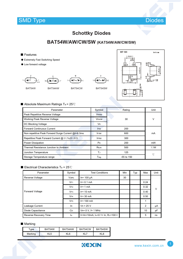 | Datasheet | BAT54W-Kexin.pdf |