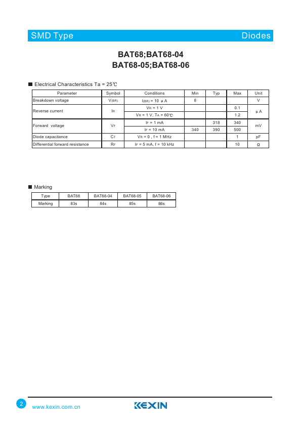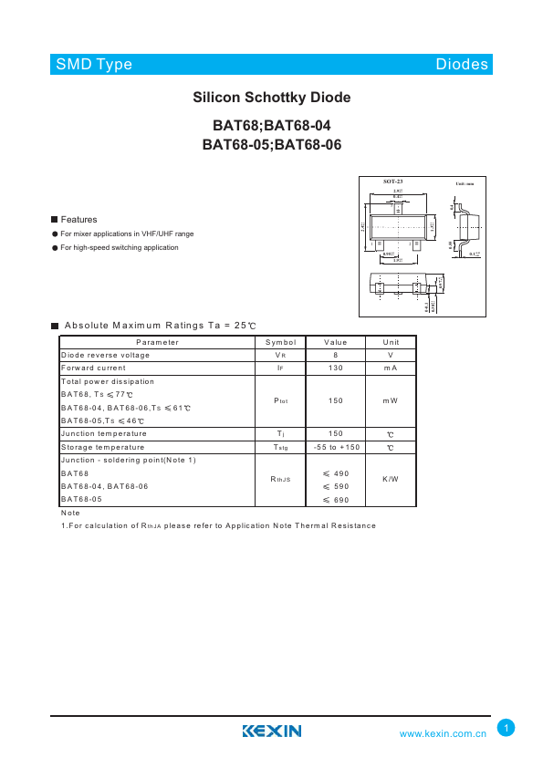 Overview: SMD Type Silicon Schottky Diode BAT68;BAT68-04 BAT68-05;BAT68-06.