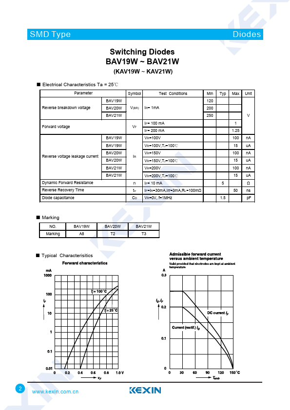 SMD Type Switching Diodes BAV19W ~ BAV21W (KAV19W ~ KAV21W).