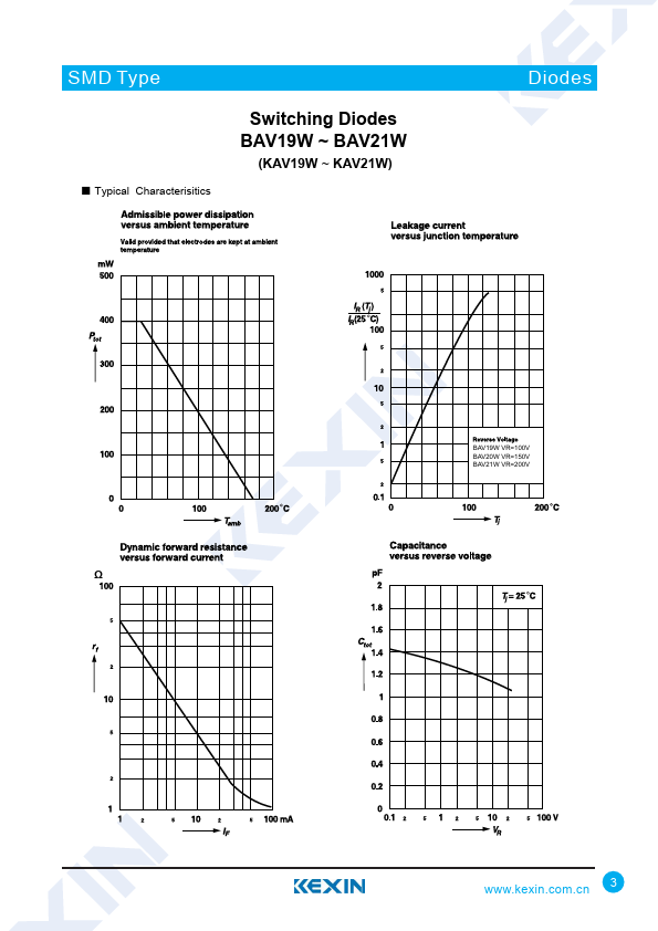SMD Type Switching Diodes BAV19W ~ BAV21W (KAV19W ~ KAV21W).