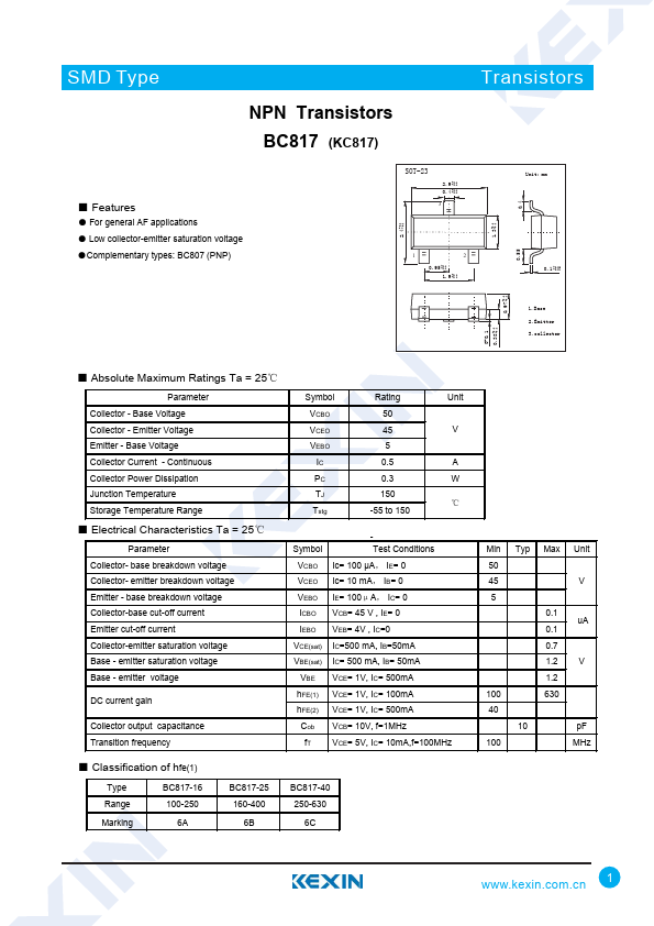 | Datasheet | BC817-Kexin.pdf |