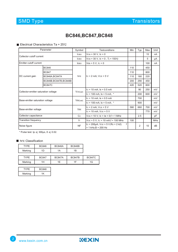 Overview: SMD Type TransistIoCrs NPN General Purpose Transistor BC846,BC847,BC848.