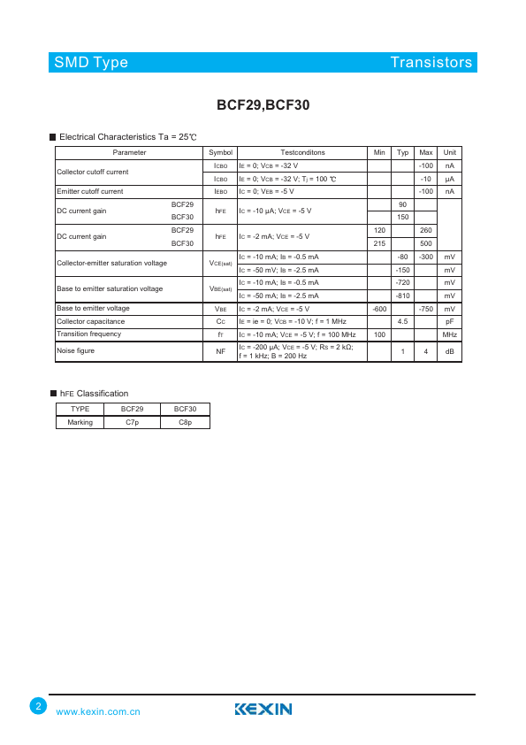 Overview: SMD Type TransistIoCrs PNP General Purpose Transistors BCF29,BCF30.