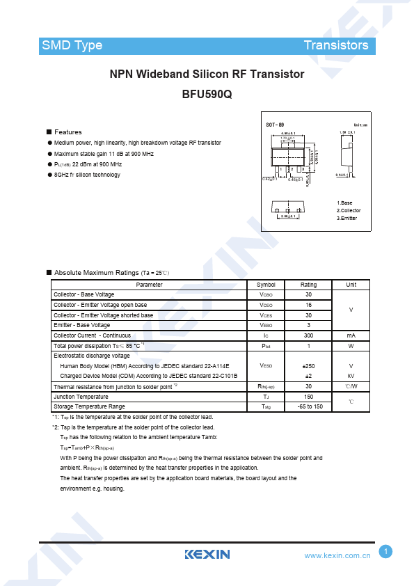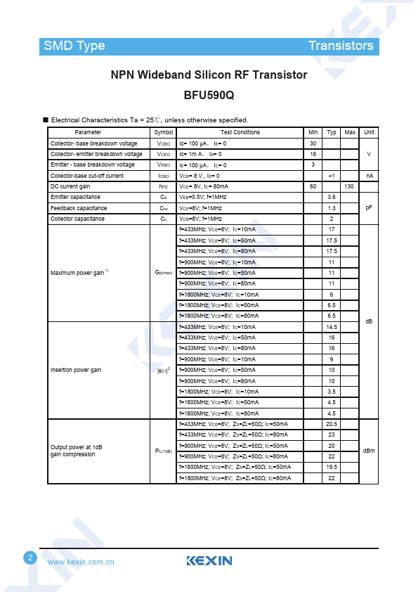 Overview: SMD Type TTrraannssiissttoorrss NPN Wideband Silicon RF Transistor BFU590Q.