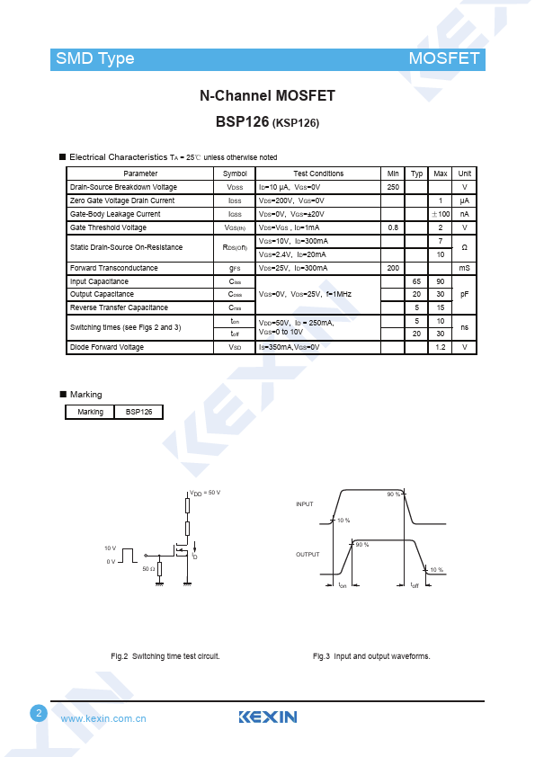 ● VDS (V) = 250V ● ID = 350mA ● RDS(ON) < 7Ω @ VGS = 10V ● Direct interface to C-MOS, TTL,etc. ● High-speed switching. ● No secondary breakdown.