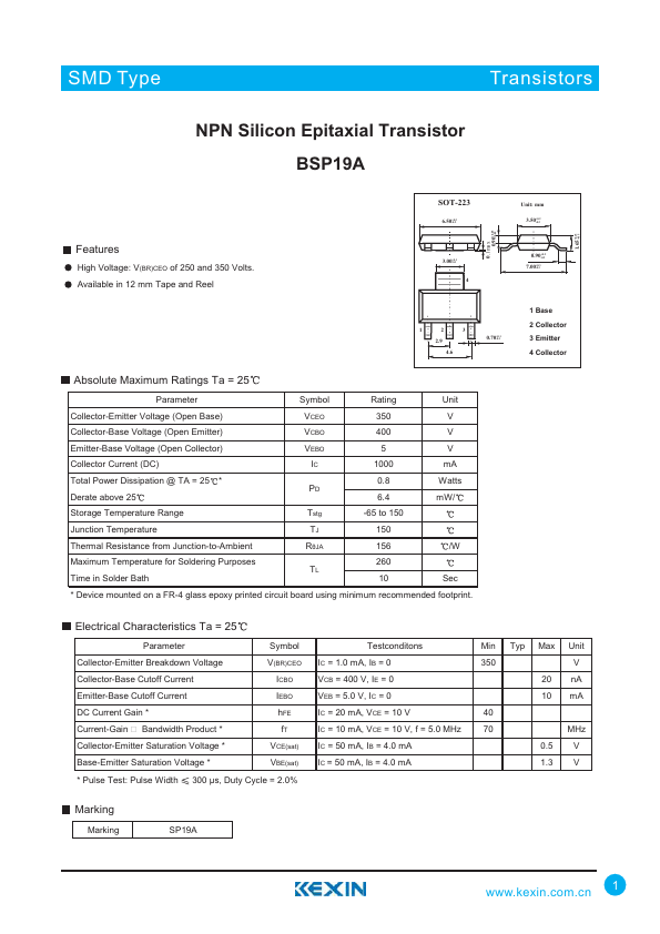 | Datasheet | BSP19A-Kexin.pdf |