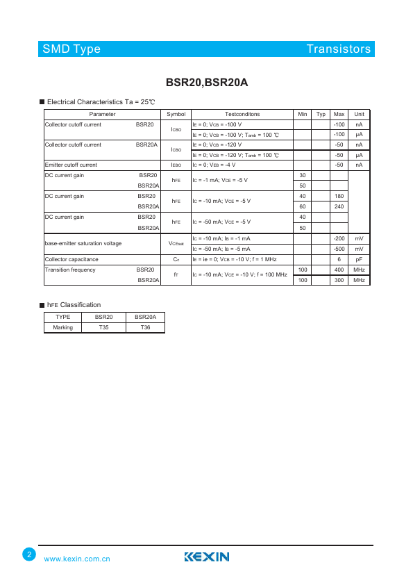 Overview: SMD Type Transistors PNP High-Voltage Transistors BSR20,BSR20A.