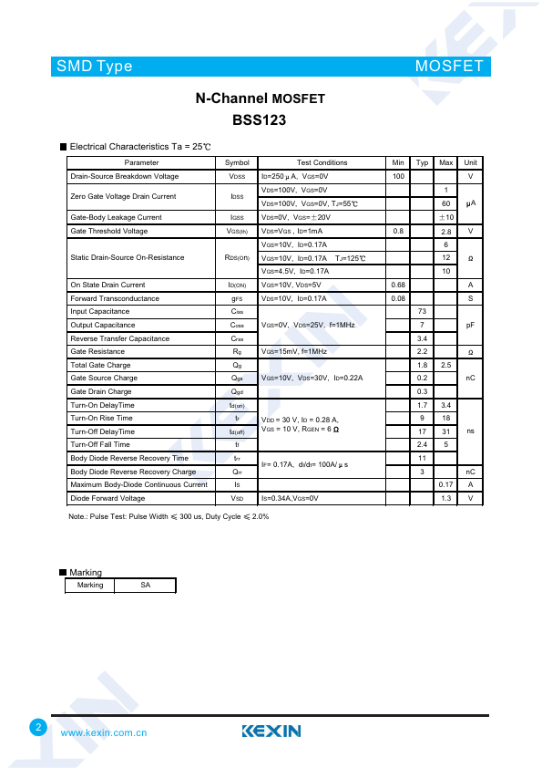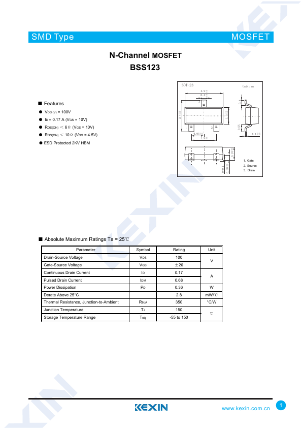 ƽ VDS (V) = 100V ƽ ID = 0.17 A (VGS = 10V) ƽ RDS(ON) ˘ 6¡ (VGS = 10V) ƽ RDS(ON) ˘ 10¡ (VGS = 4.5V) ƽ ESD Protected 2KV HBM