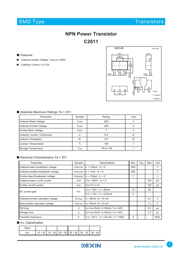 Overview: SMD Type Transistors NPN Power Transistor ■.