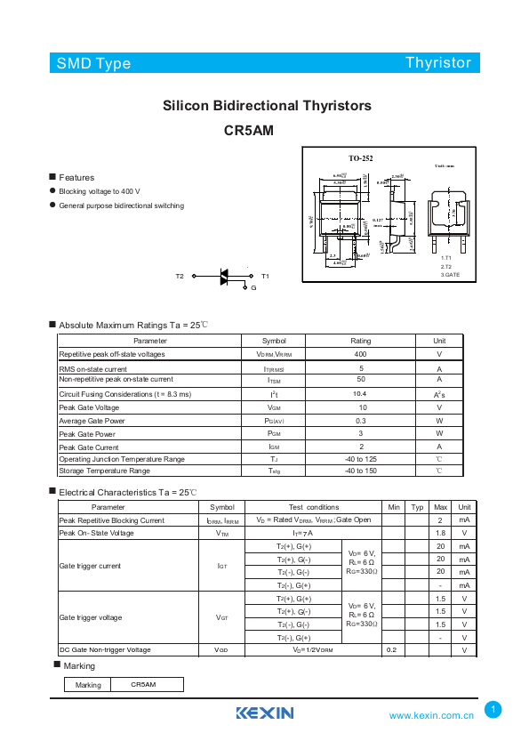● Blocking voltage to 400 V ● General purpose bidirectional switching