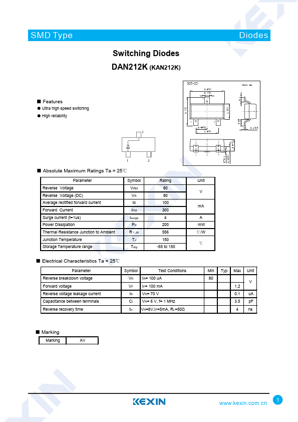 DAN212K | Ultra high-speed switching diode arrays | Rohm |