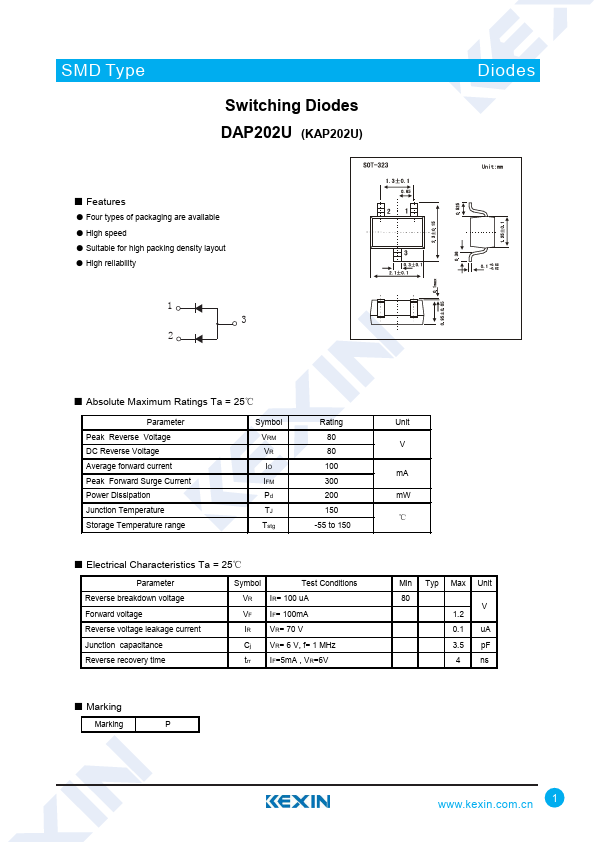 SMD Type Switching Diodes DAP202U (KAP202U) Diodes.