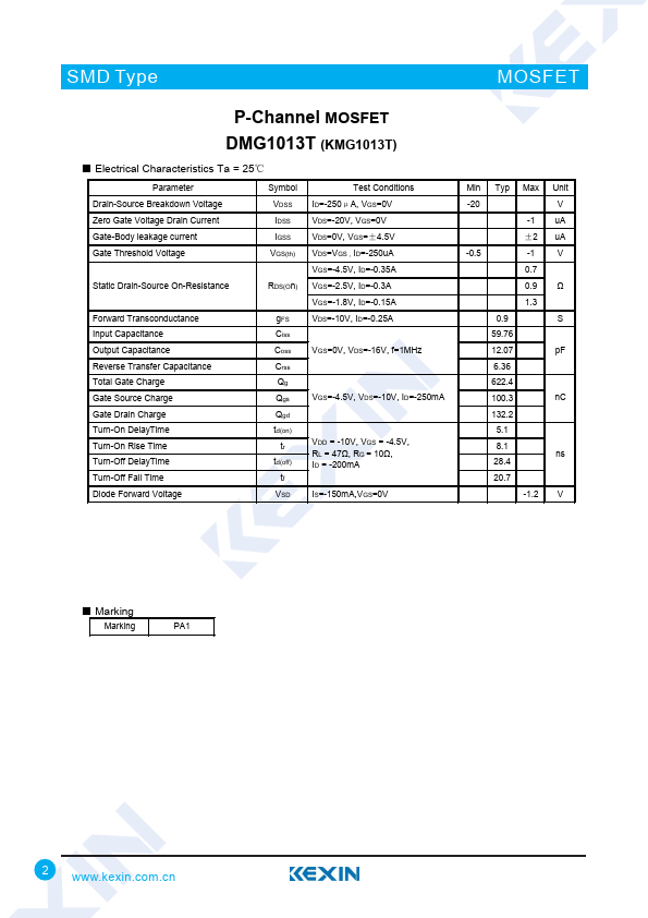 P-Channel MOSFET DMG1013T (KMG1013T)