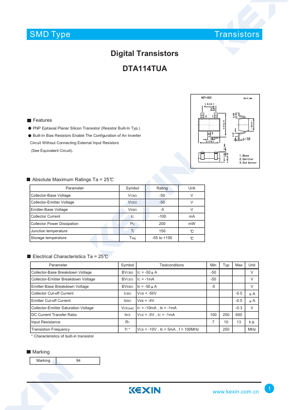 | Datasheet | DTA114TUA-Kexin.pdf |