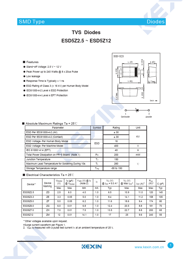| Datasheet | ESD5Z2.5-Kexin.pdf |