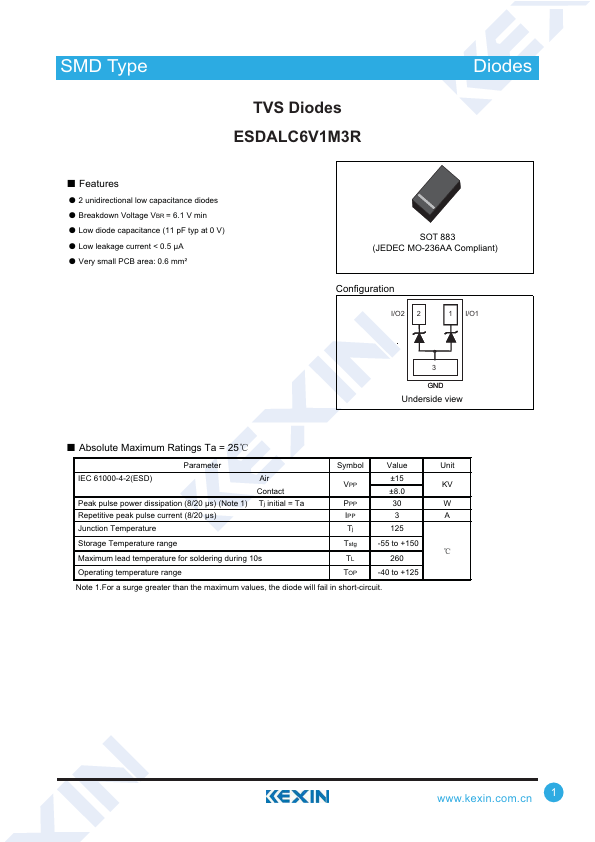 ESDALC6V1M3R datasheet by Kexin Semiconductor.