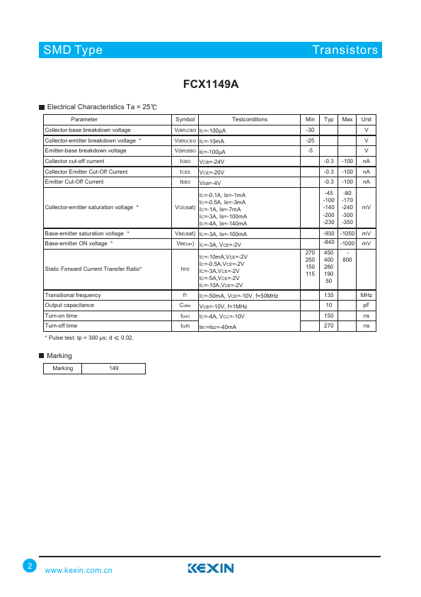 SMD Type Transistors PNP Silicon Power Switching Transistor FCX1149A.