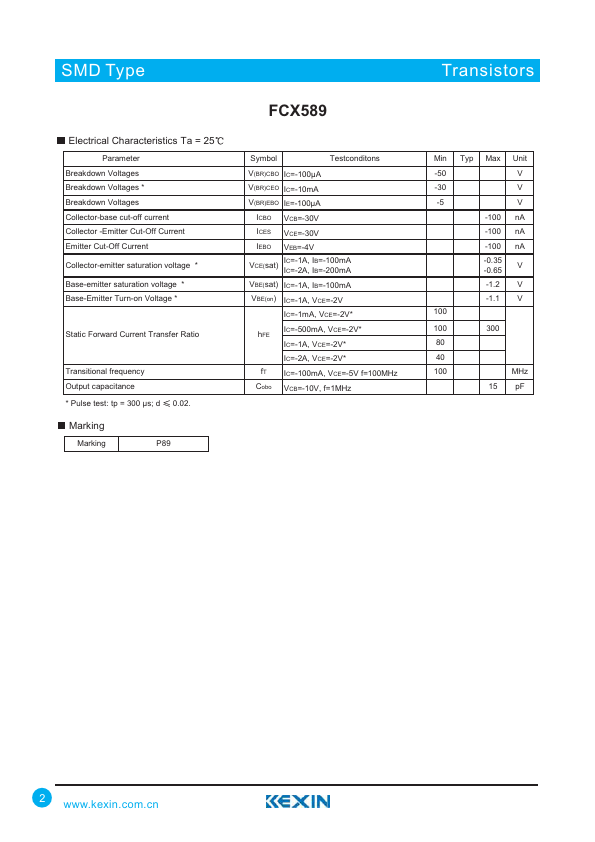SMD Type Transistors Power High Performance Transistor FCX589.