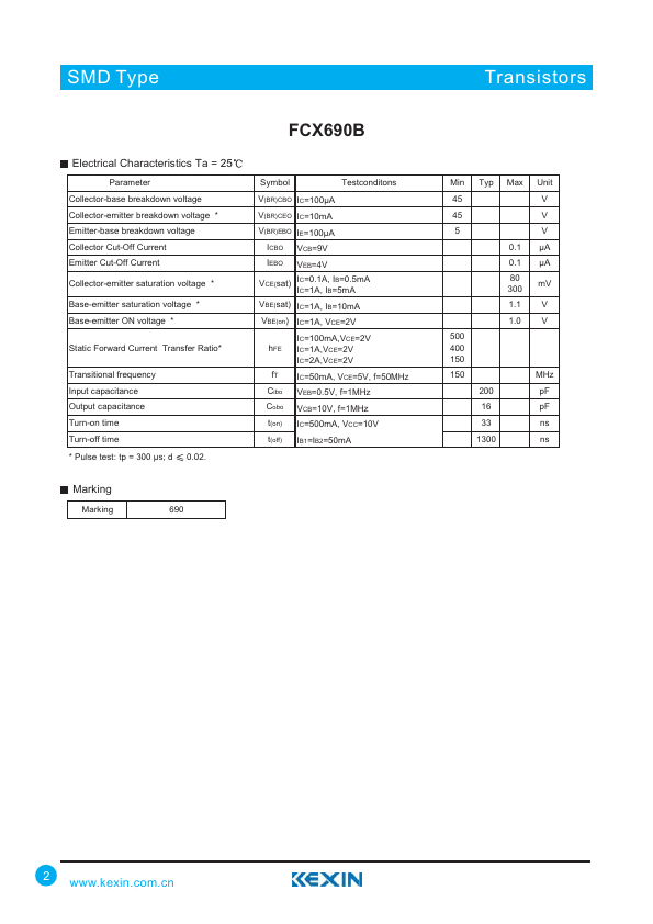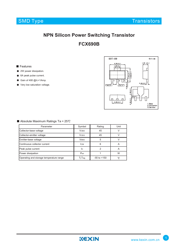 SMD Type Transistors NPN Silicon Power Switching Transistor FCX690B.