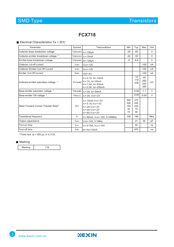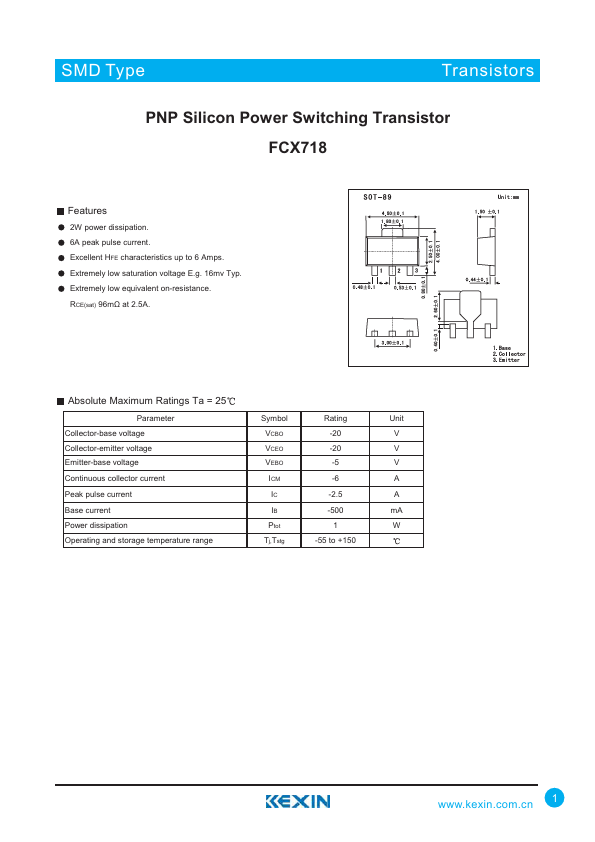 SMD Type Transistors PNP Silicon Power Switching Transistor FCX718.