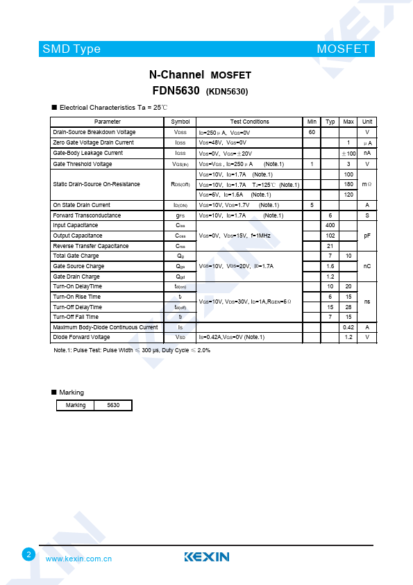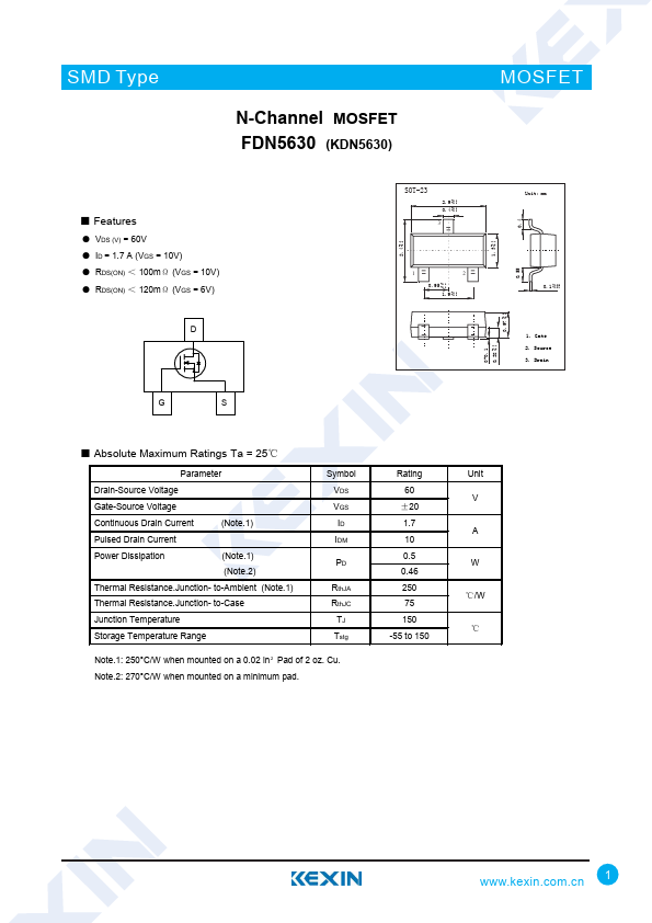N-Channel MOSFET FDN5630 (KDN5630)
