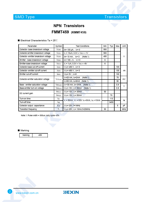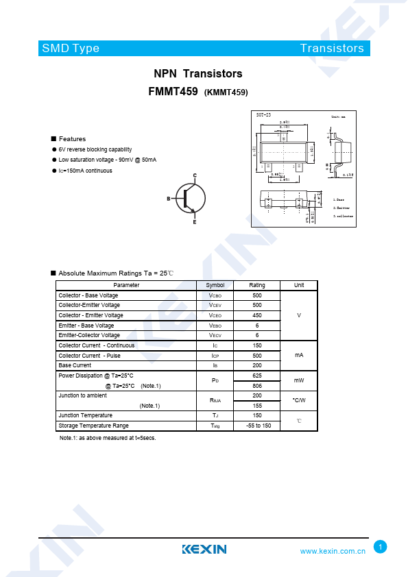 Overview: SMD Type Transistors NPN Transistors FMMT459 (KMMT459) ■.