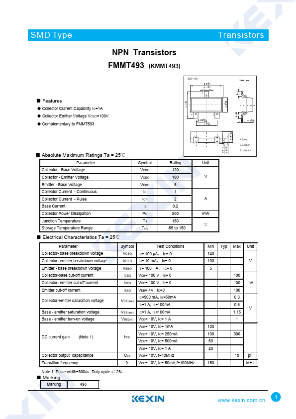 SMD Type Transistors NPN Transistors FMMT493 (KMMT493) ■.