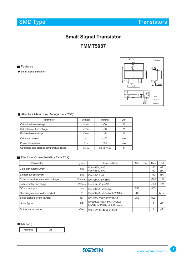 Overview: SMD Type TransistIoCrs Small Signal Transistor FMMT5087.