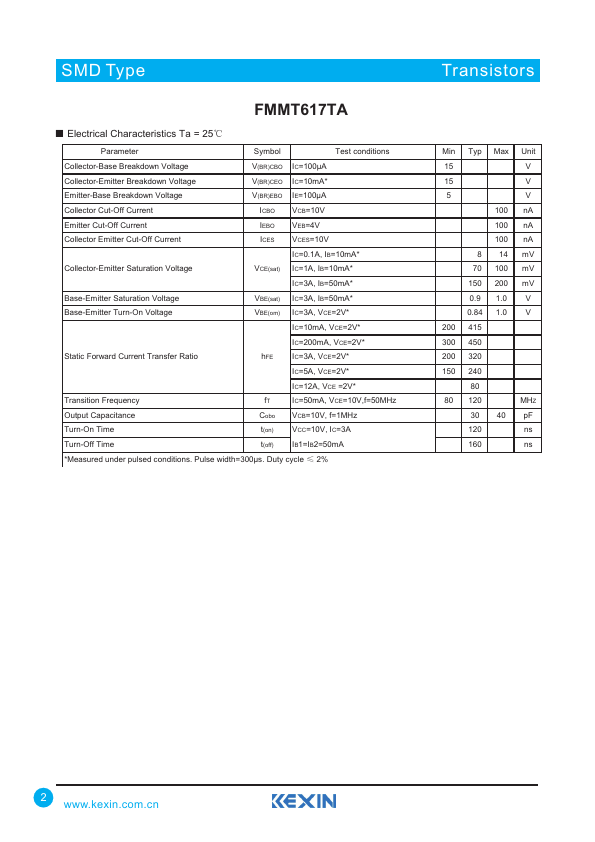 Overview: SMD Type Transistors NPN Silicon Power Transistor FMMT617TA ■.