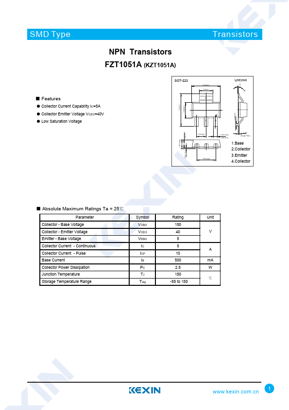 SMD Type Transistors NPN Transistors FZT1051A (KZT1051A) ■.