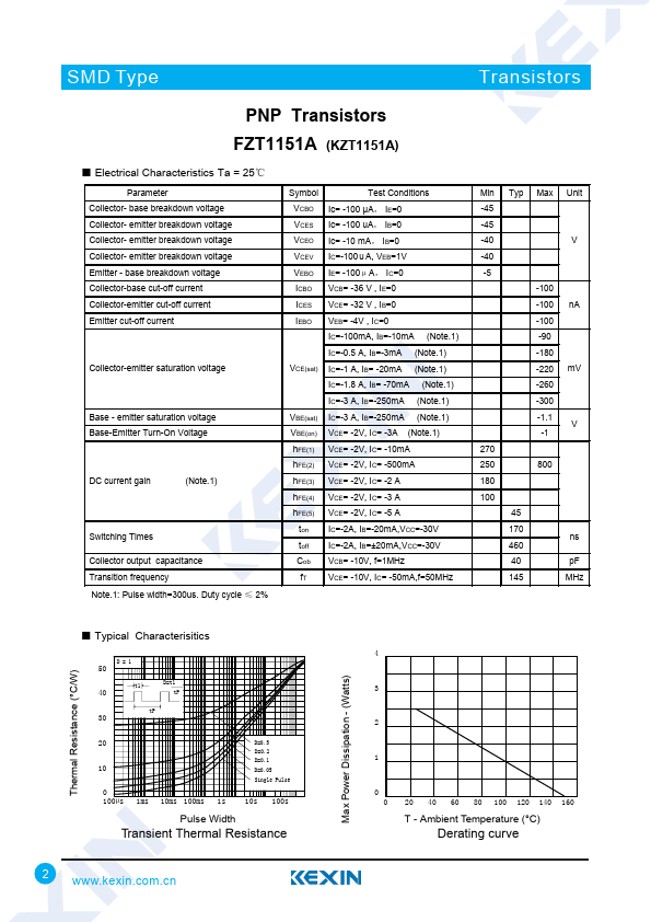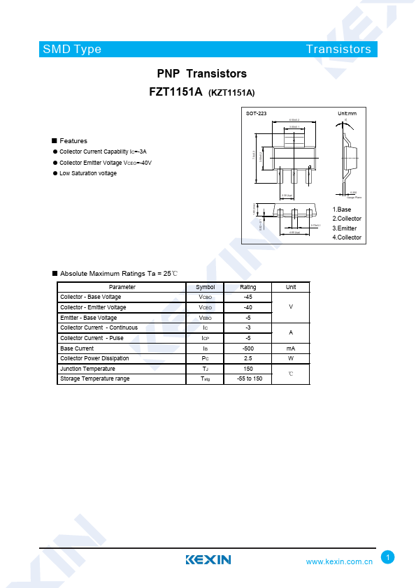 Overview: SMD Type Transistors PNP Transistors FZT1151A (KZT1151A) ■.