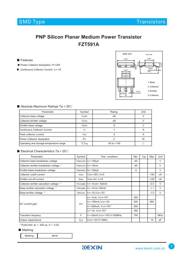 FZT591 | 60V PNP MEDIUM POWER TRANSISTOR | Diodes |