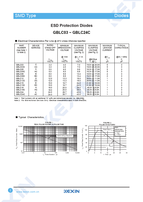 SMD Type ESD Protection Diodes GBLC03 ~ GBLC24C TransDisiotodress.