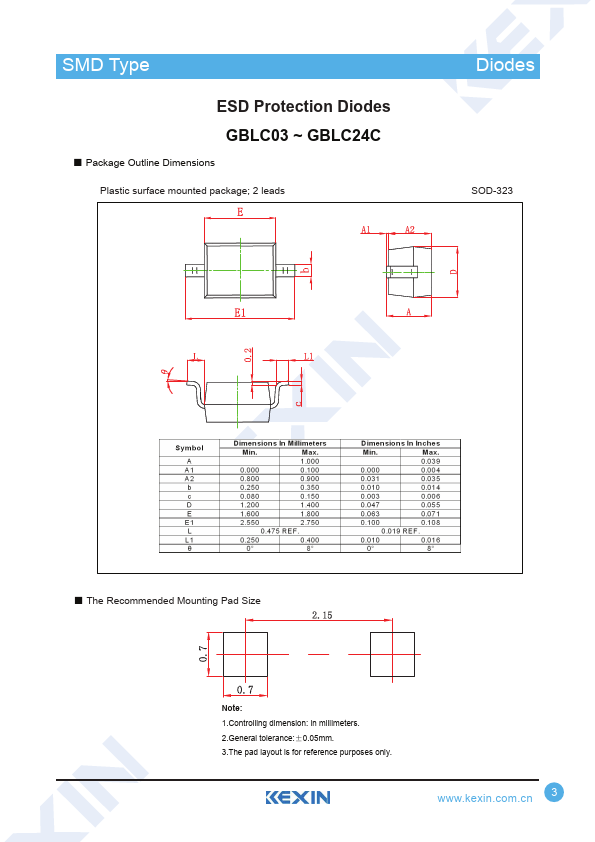 SMD Type ESD Protection Diodes GBLC03 ~ GBLC24C TransDisiotodress.