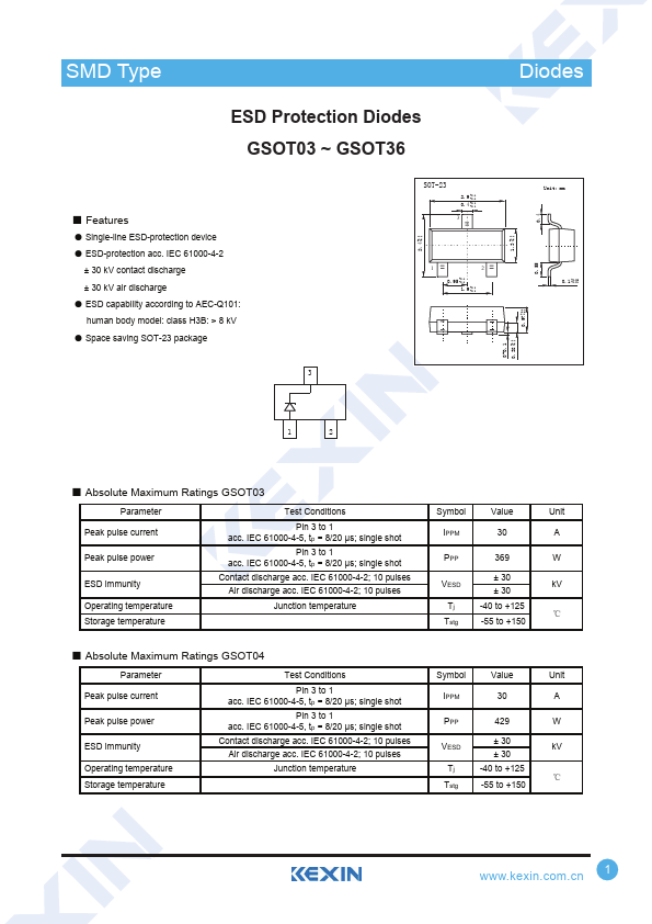 SMD Type ESD Protection Diodes GSOT03 ~ GSOT36 TransDisiotodress.