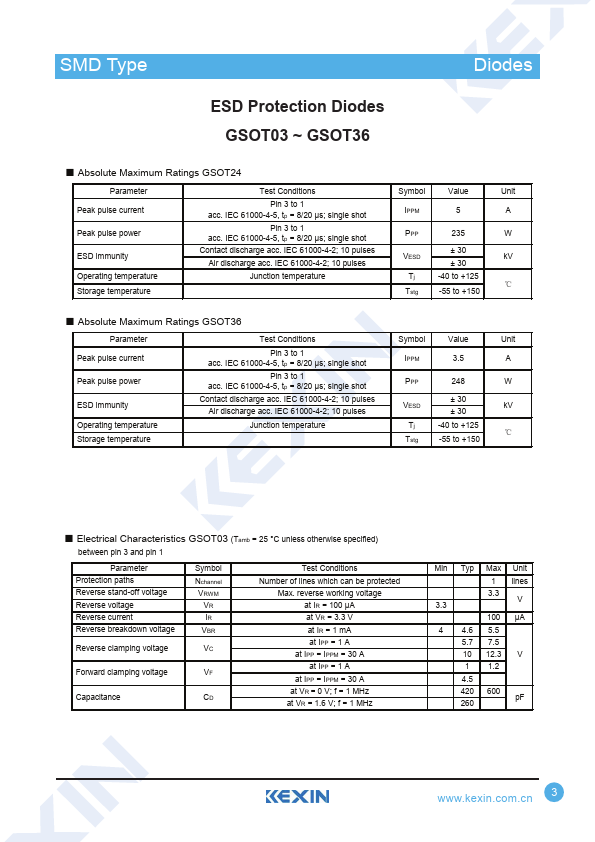 SMD Type ESD Protection Diodes GSOT03 ~ GSOT36 TransDisiotodress.