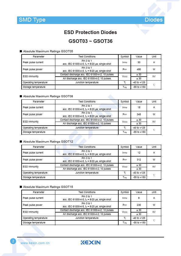 SMD Type ESD Protection Diodes GSOT03 ~ GSOT36 TransDisiotodress.