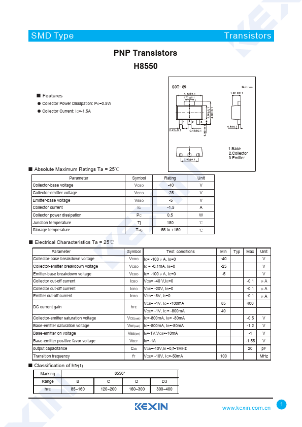 Overview: SMD Type PNP Transistors H8550 Transistors ■.