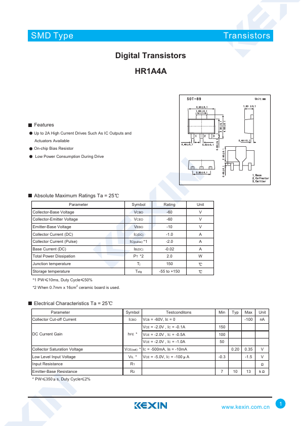 Overview: SMD Type Digital Transistors HR1A4A Transistors.
