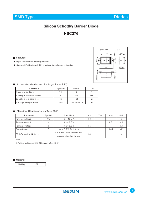 Overview: SMD Type Silicon Schottky Barrier Diode HSC276 Diodes.