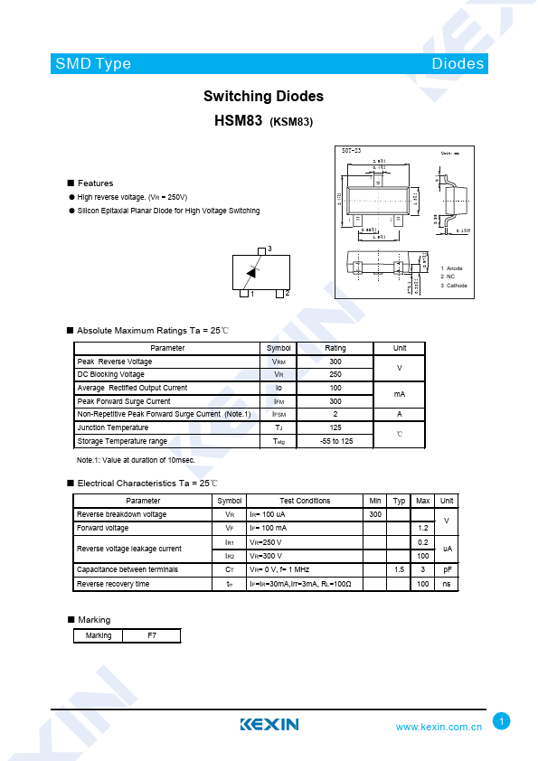 | HSM83 | Silicon Epitaxial Planar Diode for High Voltage Switching | Hitachi Semiconductor | |