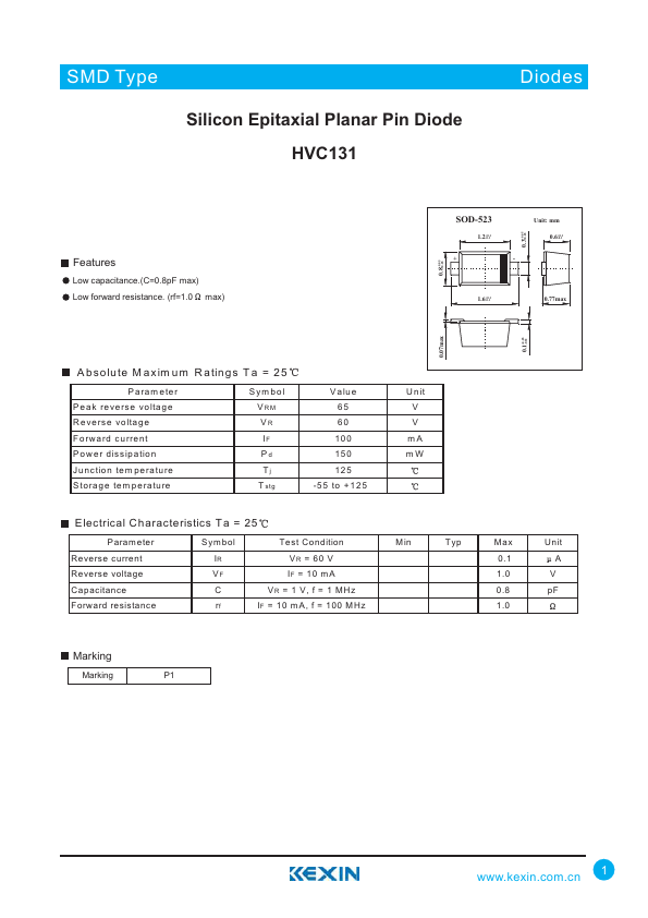 SMD Type Silicon Epitaxial Planar Pin Diode HVC131 Diodes.