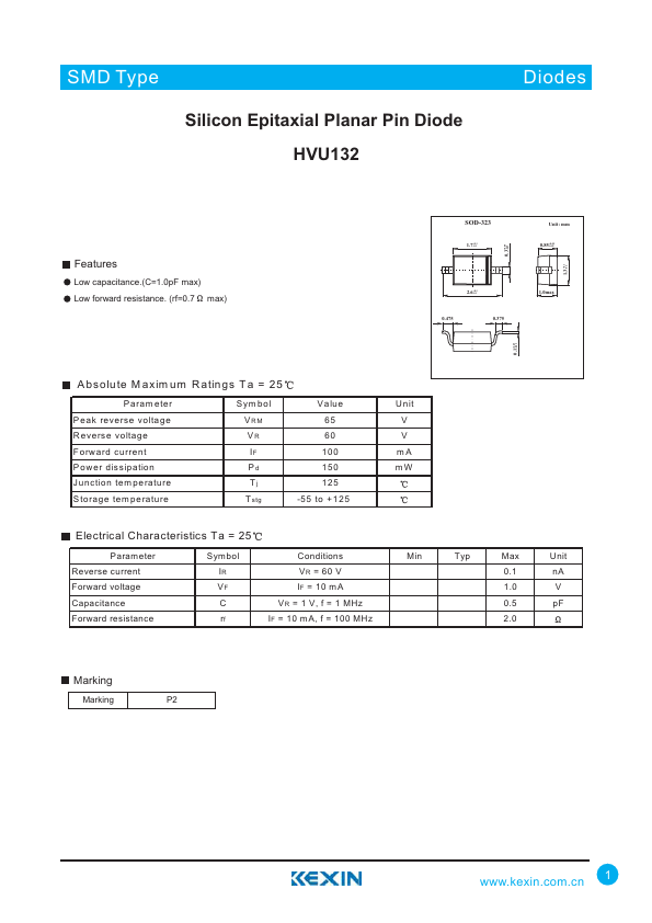 SMD Type Silicon Epitaxial Planar Pin Diode HVU132 Diodes.