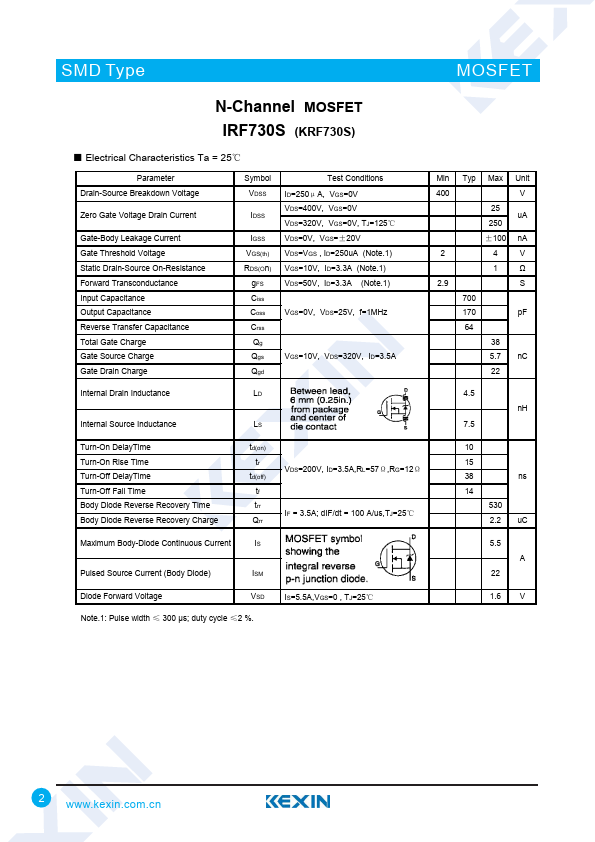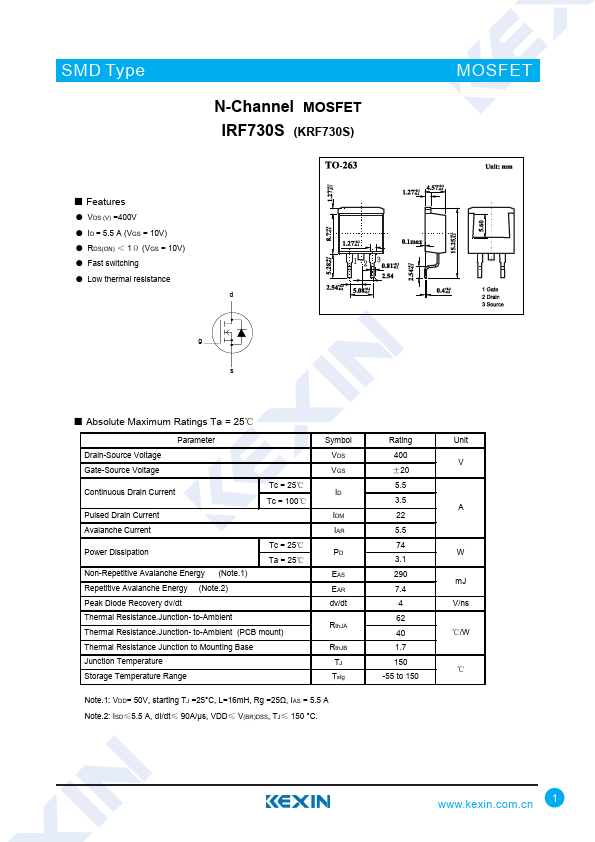 N-Channel MOSFET IRF730S (KRF730S)