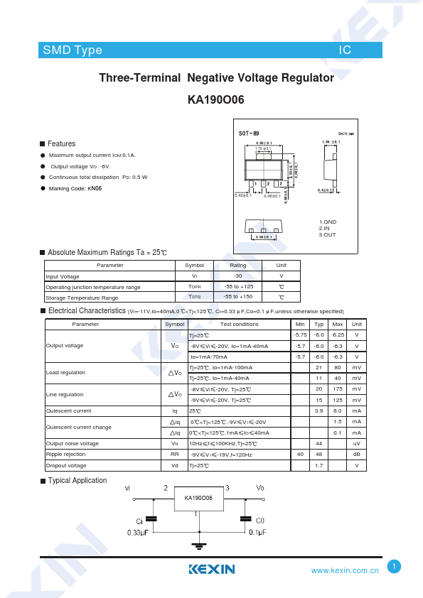 | KA190O05 | Three-Terminal Negative Voltage Regulator |